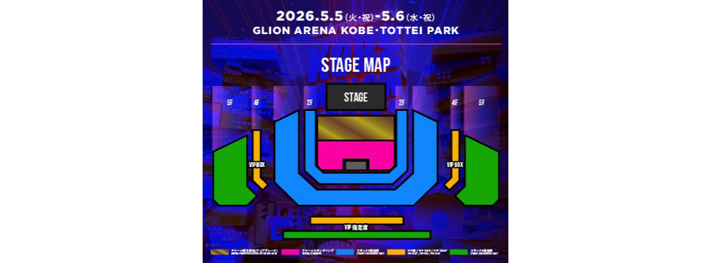 ※VIP BOXに関して:チケット1枚につき最大10人入場可能。「GLION ARENA KOBE」客席内(4F)に専用個室があり、専用バルコニーシートからライブ鑑賞可能です。