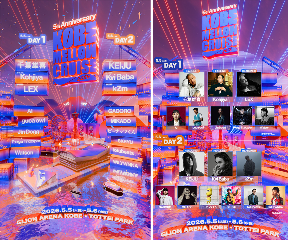 「KOBE MELLOW CRUISE 2026 -5th Anniversary-」 HEADLINER6組と2nd LINEUPが一挙解禁!